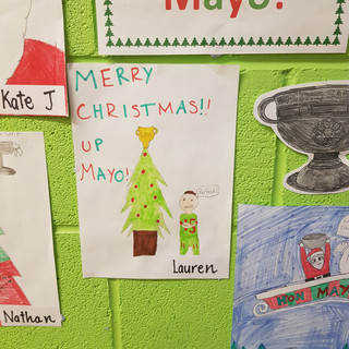 Rang a Sé really is a sea of green and red this week! The boys and girls have designed beautiful Mayo themed Christmas art ahead of the All Ireland Football Final on Saturday. Congratulations also to Lily and Lauren who got their Mayo art published in The Mayo News this week. We are all very proud of you girls!