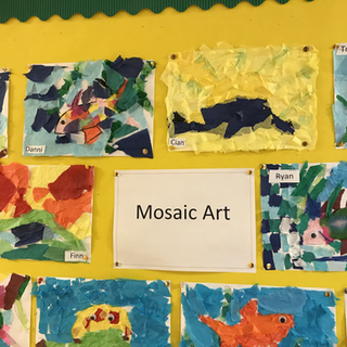 Mosaic ArtlouisburghnsmayoDec 3, 20201 min read1st and 2nd class enjoyed making mosaic art last week. They used tissue paper to make a fish and sunset picture. They did a wonderful job. Take a look!